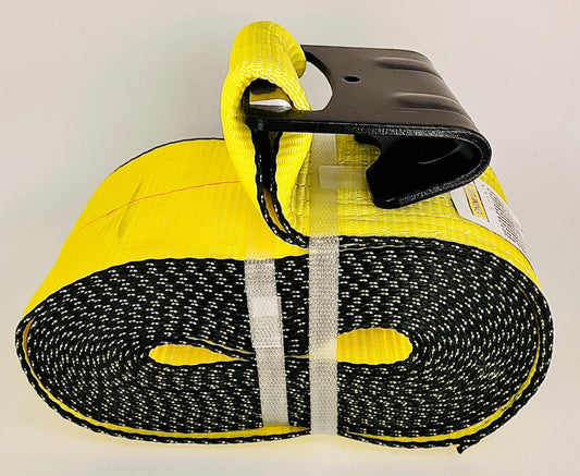 4"x30' WINCH STRAP FLAT HOOK 4,400 LB RATCHET YELLOW - TELLICO BRANDED