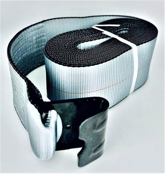 4"X30' WINCH STRAP FLAT HOOK 5,400 LB RATCHET STRAP GREY - TELLICO Branded - Retail Ready