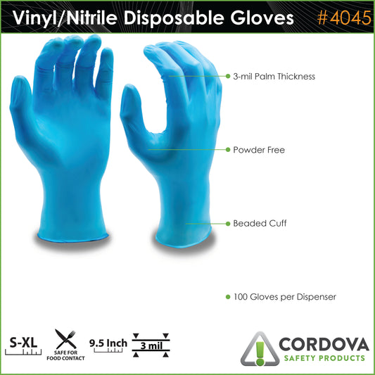 Disposable, Vinyl/Nitrile Gloves - 3 ML Thick - Large - 1,000 Count Case (10 Packs of 100)